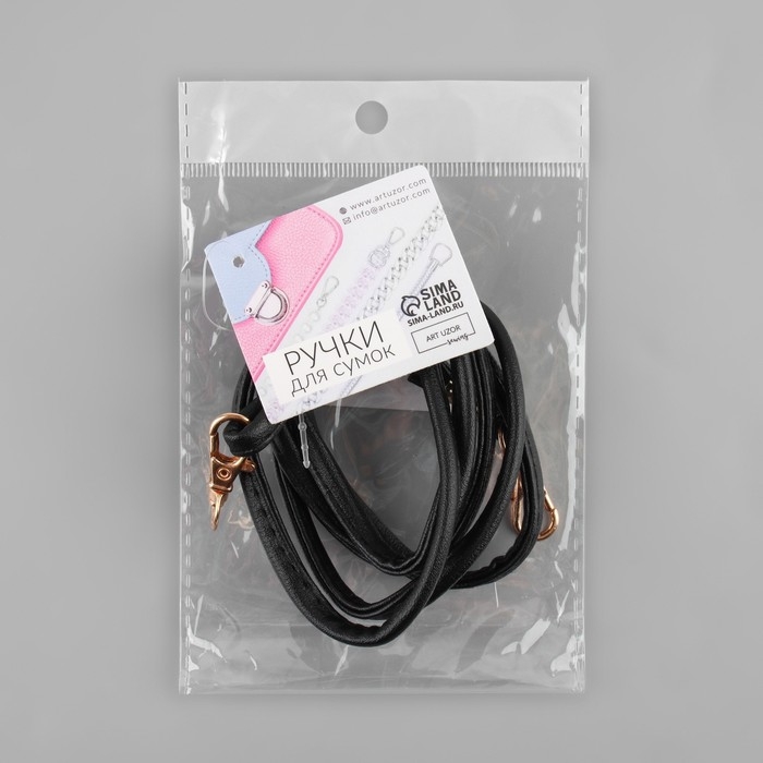 Ручка-шнурок для сумки, с карабинами, 120 × 0,6 см, цвет чёрный