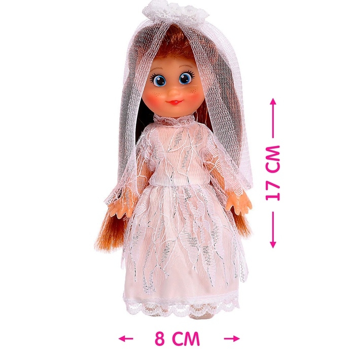 Классическая кукла в образе невесты, одетая в белоснежное платье и фату, станет чудесным дополнением в коллекции любого ребёнка. Высота игрушки – 17 см, что делает её удобной для игр и переноски. С деликатно проработанными чертами и аккуратными деталями, эта игрушка станет настоящим другом и спутником для вашего ребёнка.