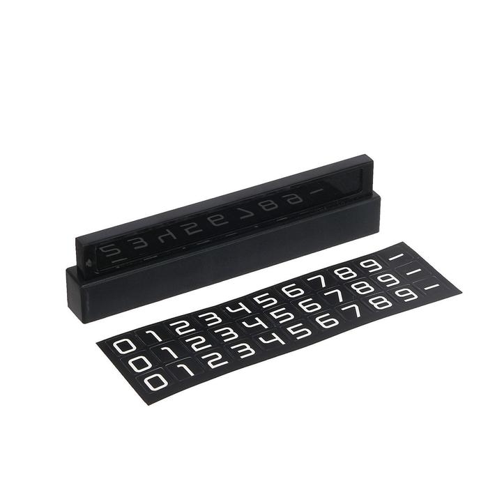 Парковочная табличка с номером телефона имеет подвижную конструкцию, что позволяет скрыть номер телефона легким движением одной руки. Набор имеет трафарет с цифрами от 0 до 9- это позволяет быстрого и легкого составить или изменить номера телефона, в случае если автомобилем пользуется не один водитель. В нижней части корпуса находится клейкая лента, которая позволяет надежно прикрепить табличку в нужном месте автомобиля. Современный дизайн таблички не будет выделяться из интерьера салона вашего автомобиля. Парковочная табличка залог спокойствия водителя.