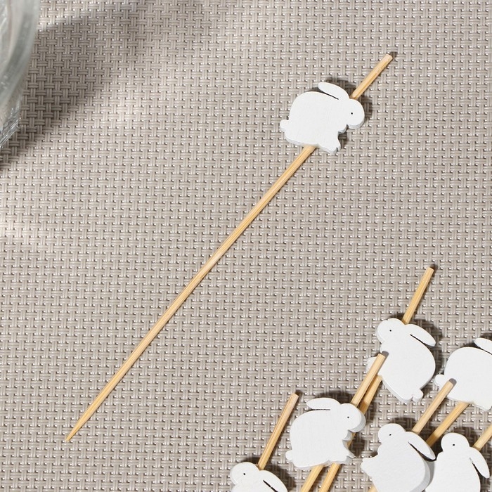 Шпажки Доляна «Пасхальные кролики», 12 см, набор 25 шт, цвет белый