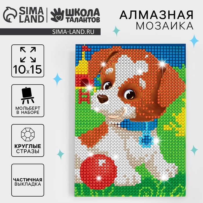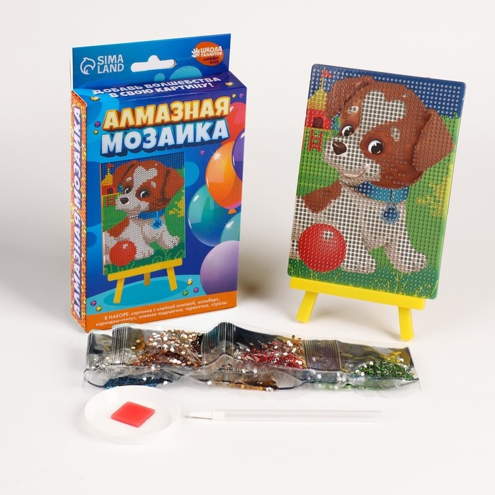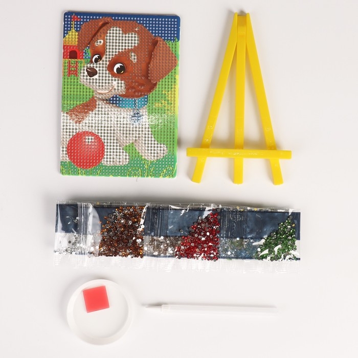 Алмазная мозаика с частичным заполнением на подставке для детей «Весёлая собачка»