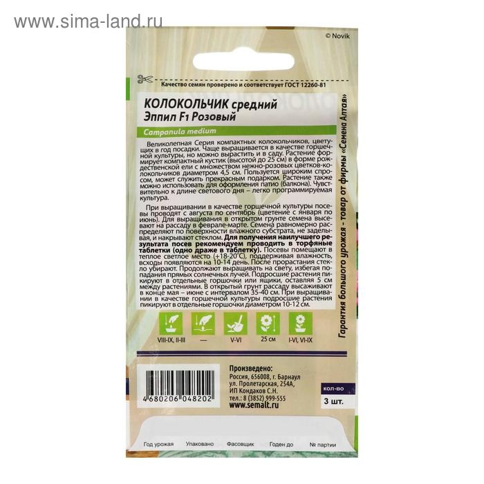 Семена цветов Колокольчик "Эппил", розовый, F1, 3 шт.