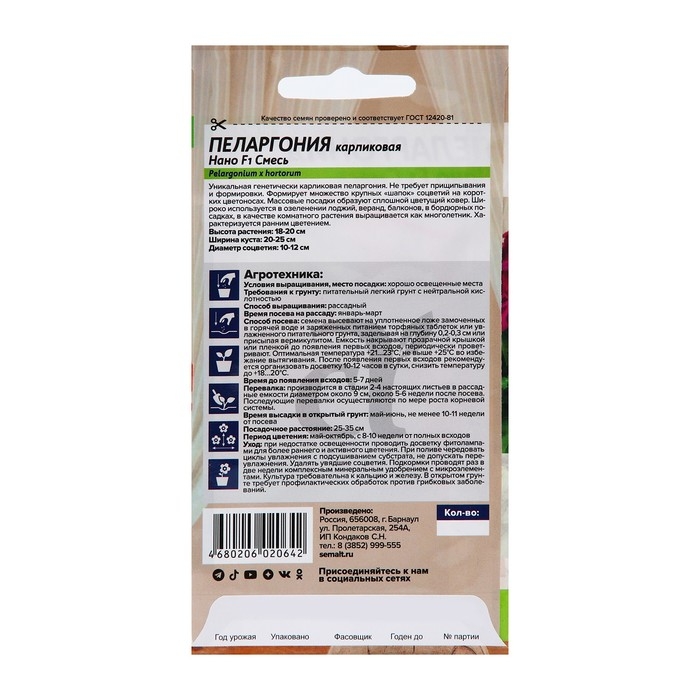 Семена цветов Пеларгония "Нано", "Cмесь", 3 шт