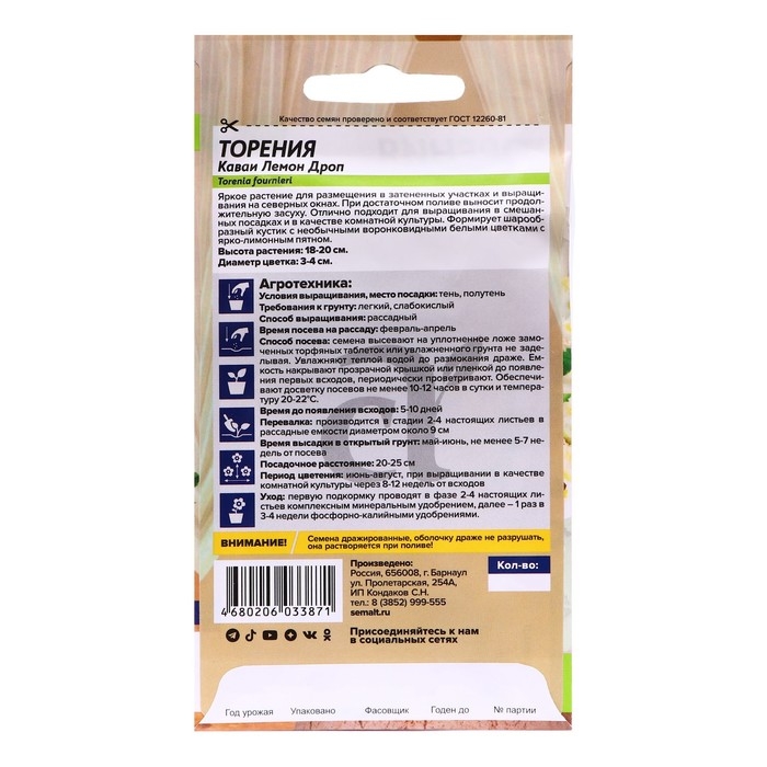 Семена цветов Торения "Каваи Лемон Дроп", 5 шт