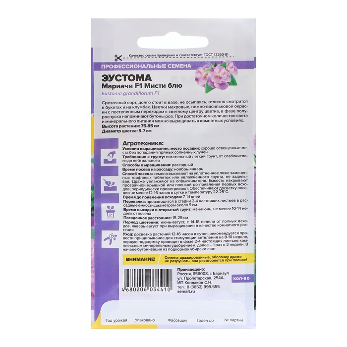 Семена цветов Эустома "Мариачи Мисти", Блю/Сем Алт/цп, 5 шт