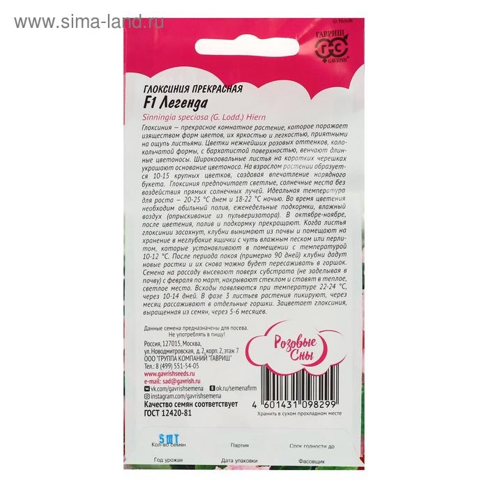 Семена цветов Глоксиния "Легенда", F1, 4 шт.