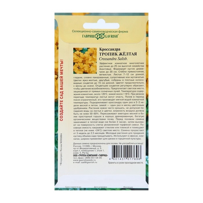 Семена цветов Кроссандра "Тропик желтая", 3 шт.