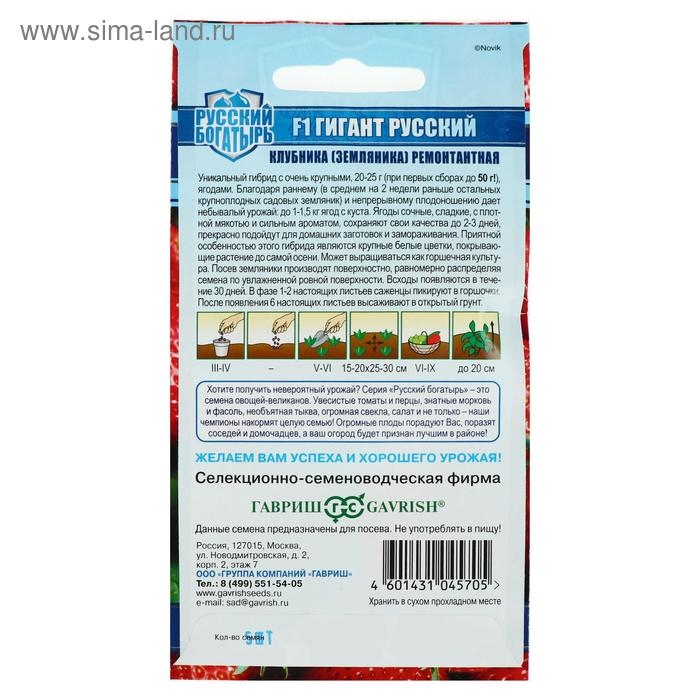 Семена Земляника "Гигант русский", F1, серия Русский богатырь, 5 шт