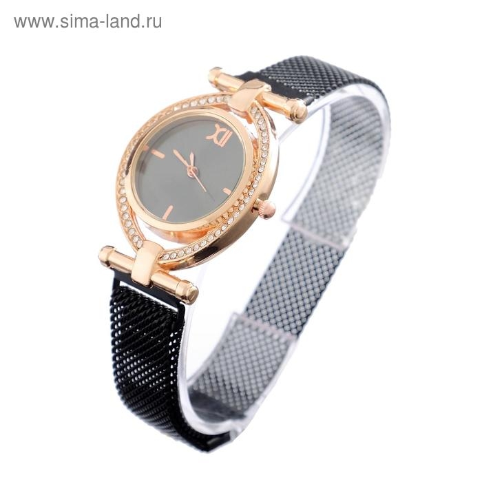 Часы наручные кварцевые женские "Пэрис", d-2.5 см, черные