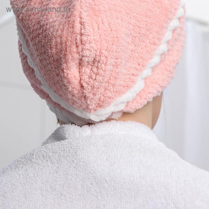 Чалма для сушки волос Доляна, микрофибра, с пуговкой, цвет розовый