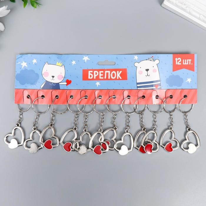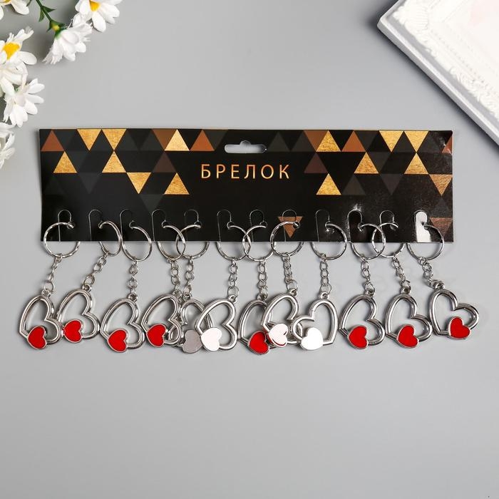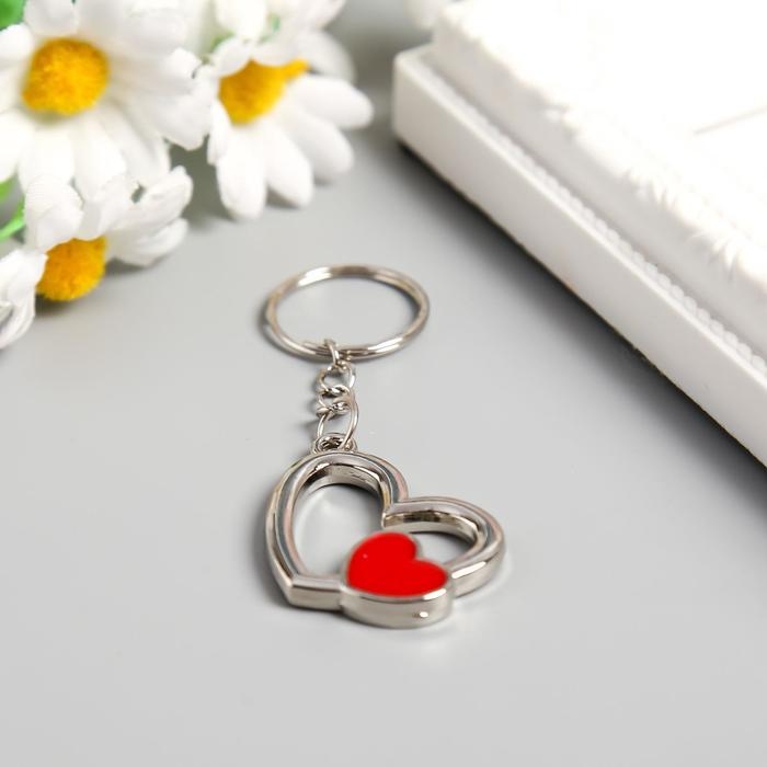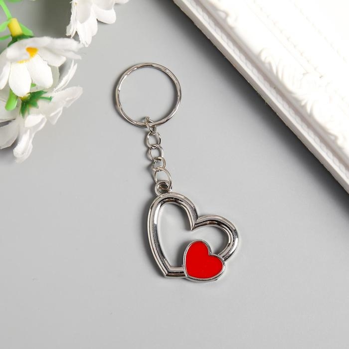 Брелок металл "Двойное сердечко" серебро с красным 2,6х3 см