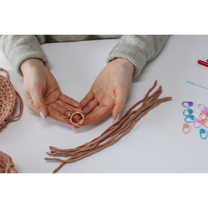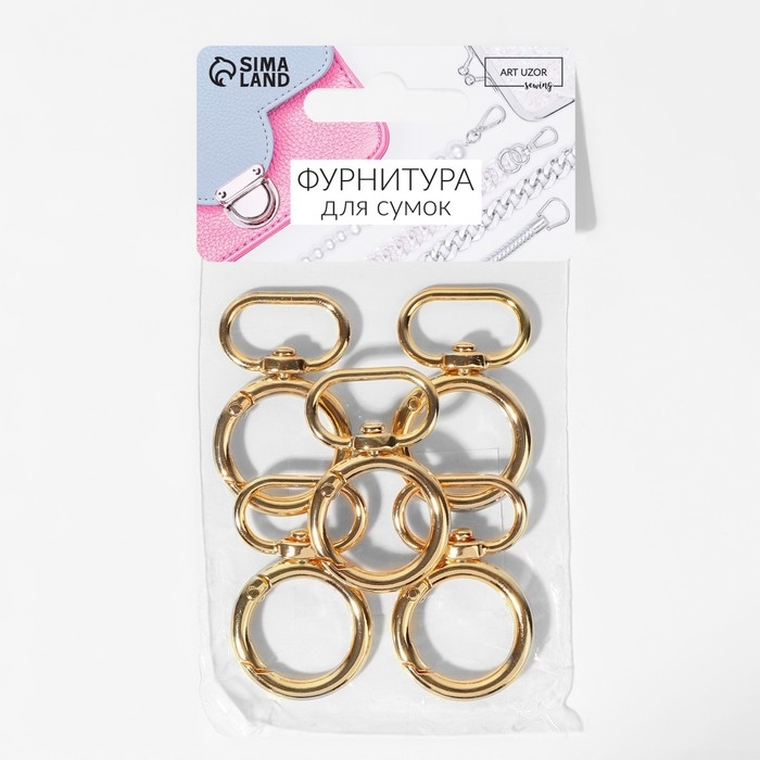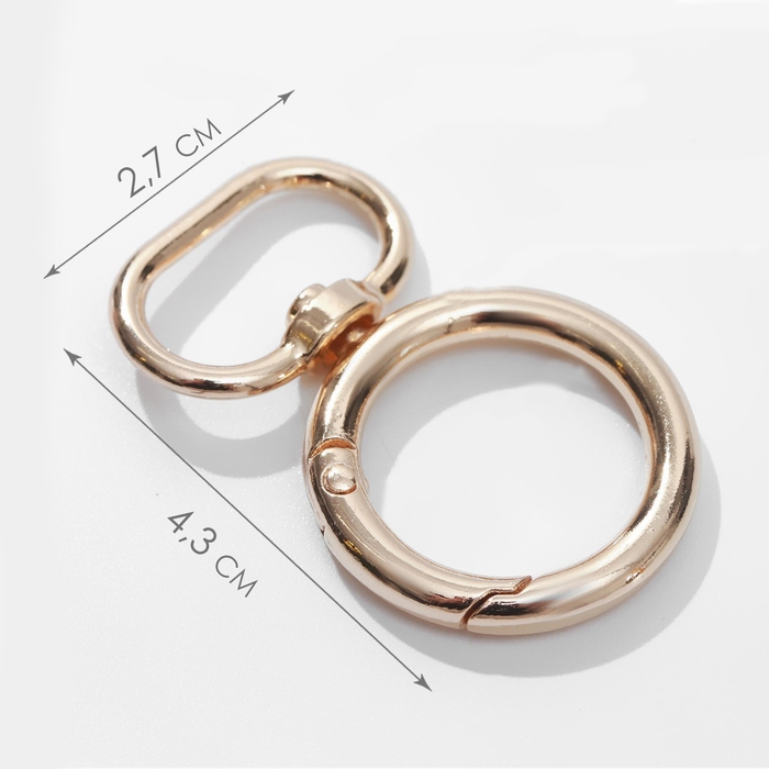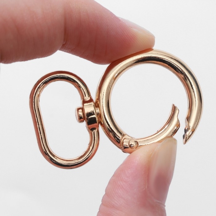 Кольцо-карабин, 43 мм, d = 27/19 мм, толщина - 4,5 мм, с креплением 20 × 3 мм, 5 шт, цвет золотой