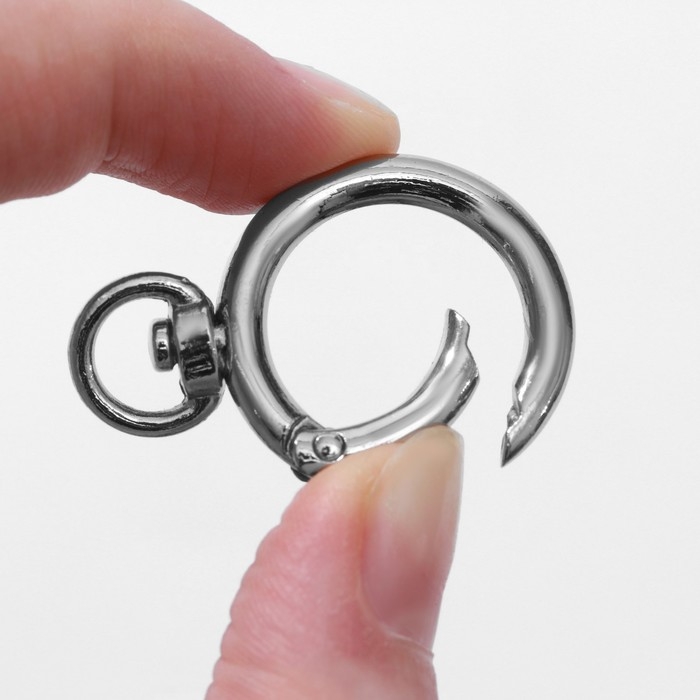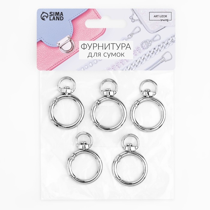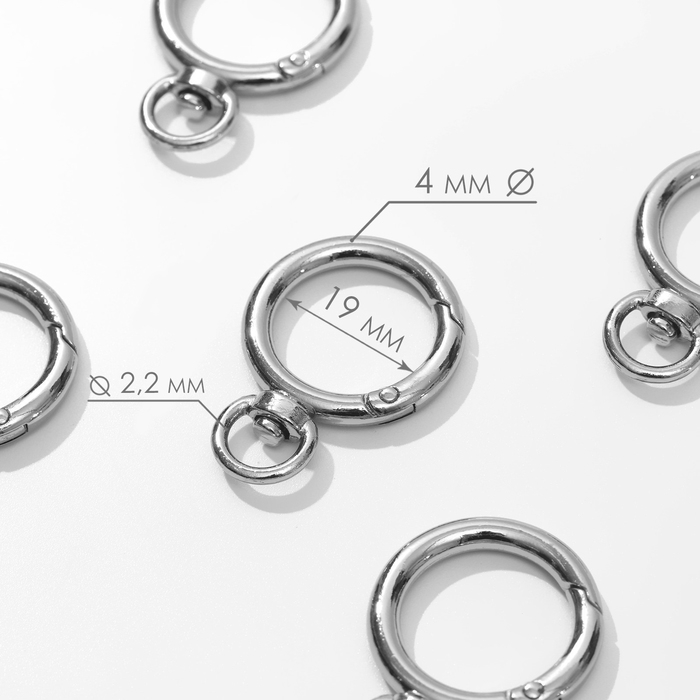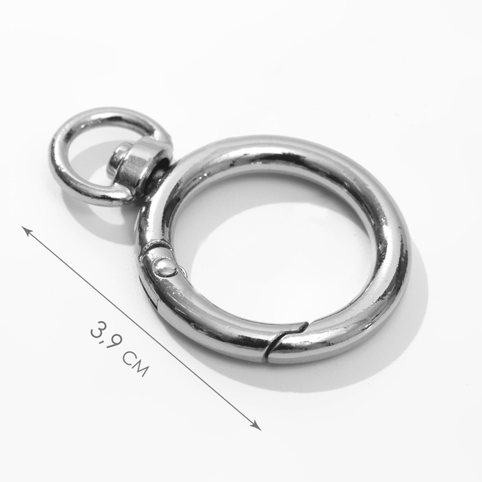Кольцо-карабин, 39 мм, d = 27/19 мм, толщина - 4 мм, с креплением 9 × 2,2 мм, 5 шт, цвет серебряный