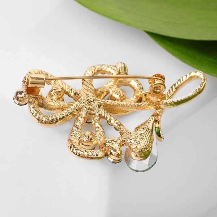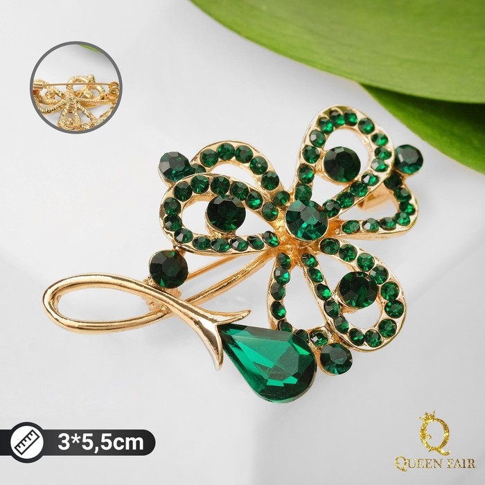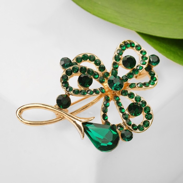 Брошь "Цветок желания", цвет тёмно-зелёный в золоте