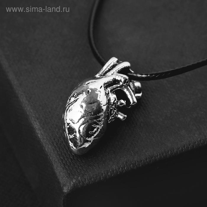 Кулон на шнурке «Анатомия» сердце, цвет чернёное серебро на чёрном шнурке, 43 см