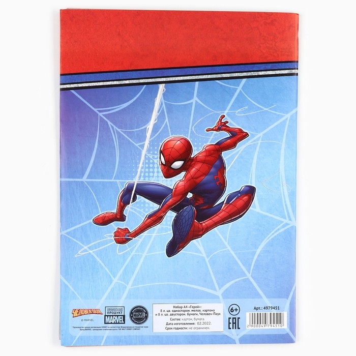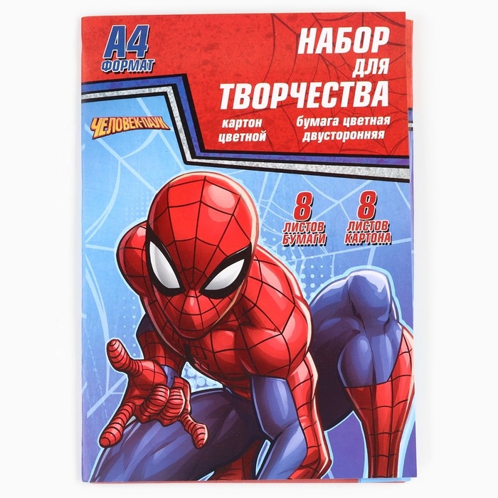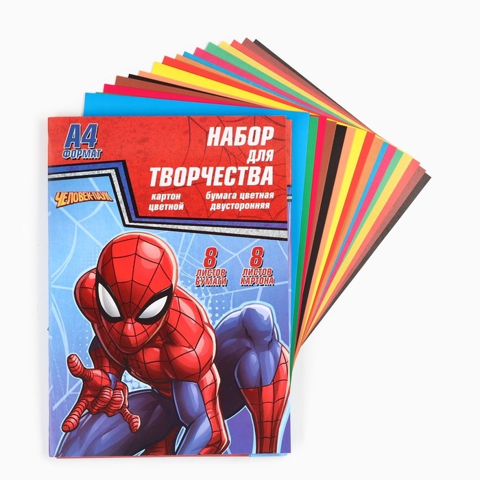Набор "Человек-паук" А4: 8л цветного одностороннего картона + 8л цветной двусторонней бумаги