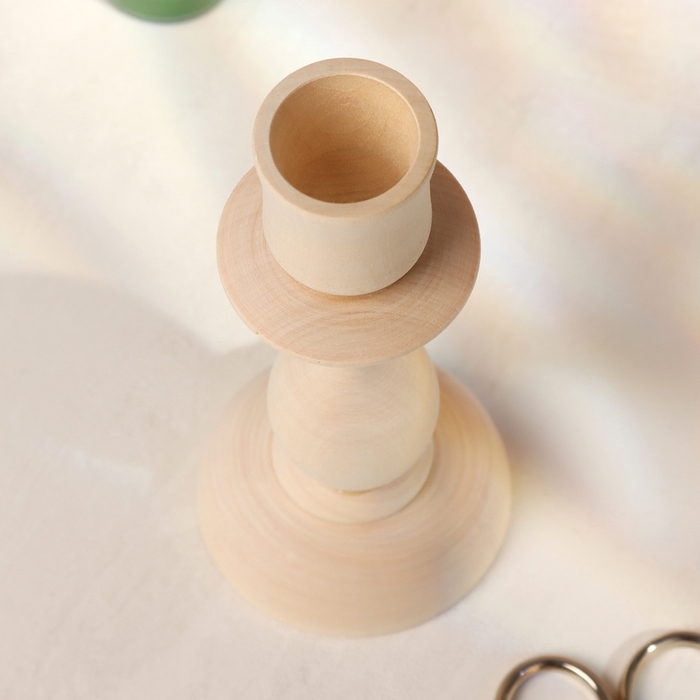 Подсвечник из дерева Джати, d 4 см, 9х9х10 см, цв. бежевый