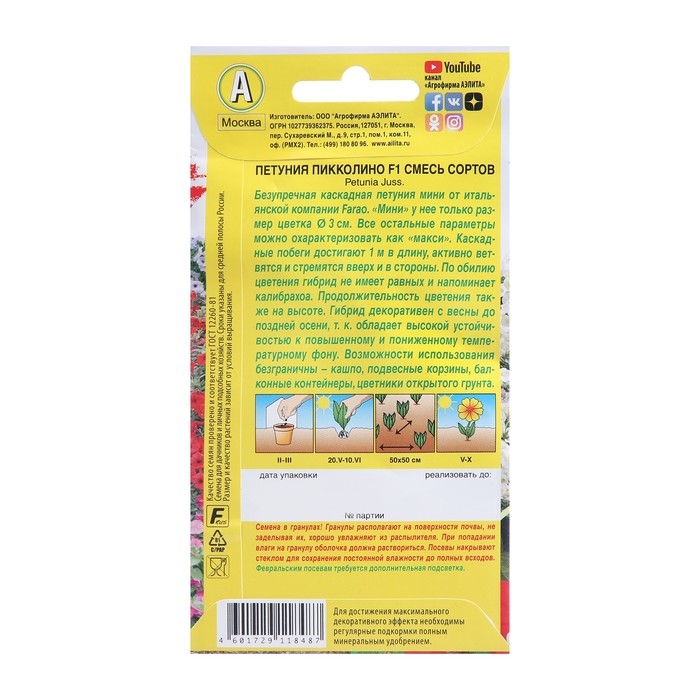 Семена цветов Петуния мини "Пикколино" F1, смесь окрасок, 7 шт.