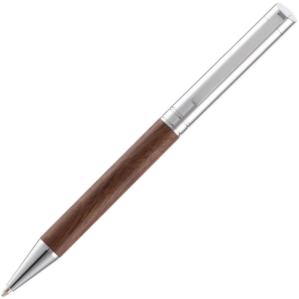 Шариковая ручка в деревянном корпусе с металлическими деталями.