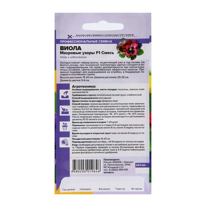 Семена цветов Виола "Махровое кружево", ц/п, 4 шт.