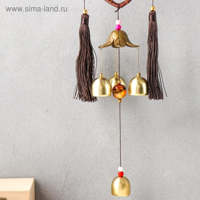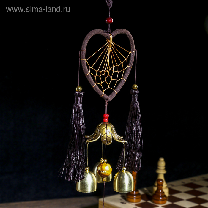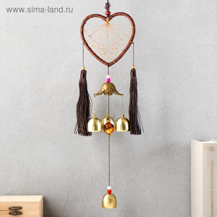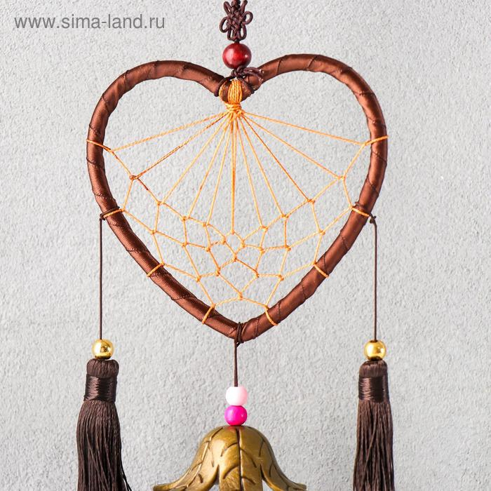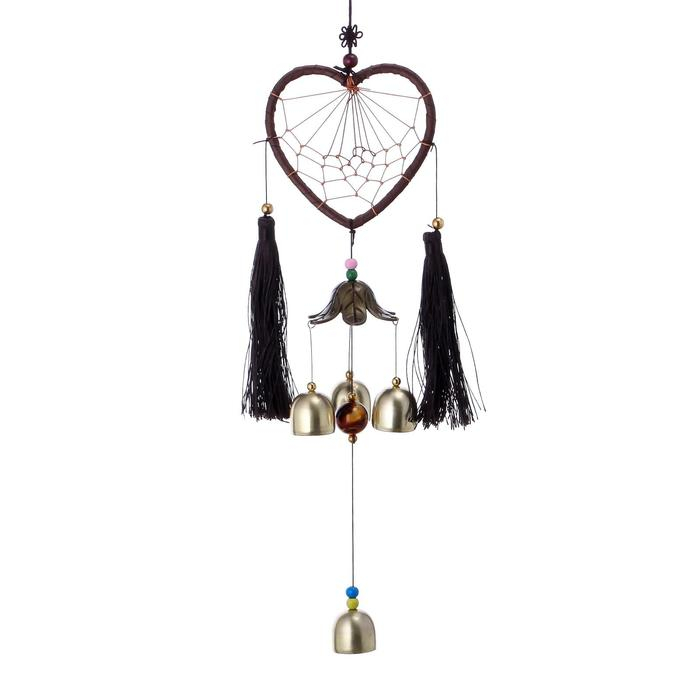 Музыка ветра с ловцом снов "Сердце с кисточками" 4 колокольчика d=10,5 длина 40 см