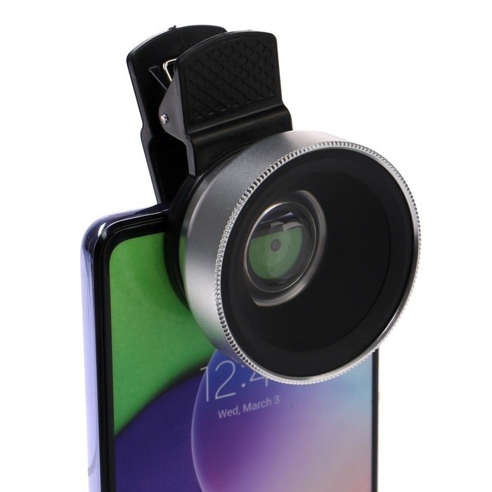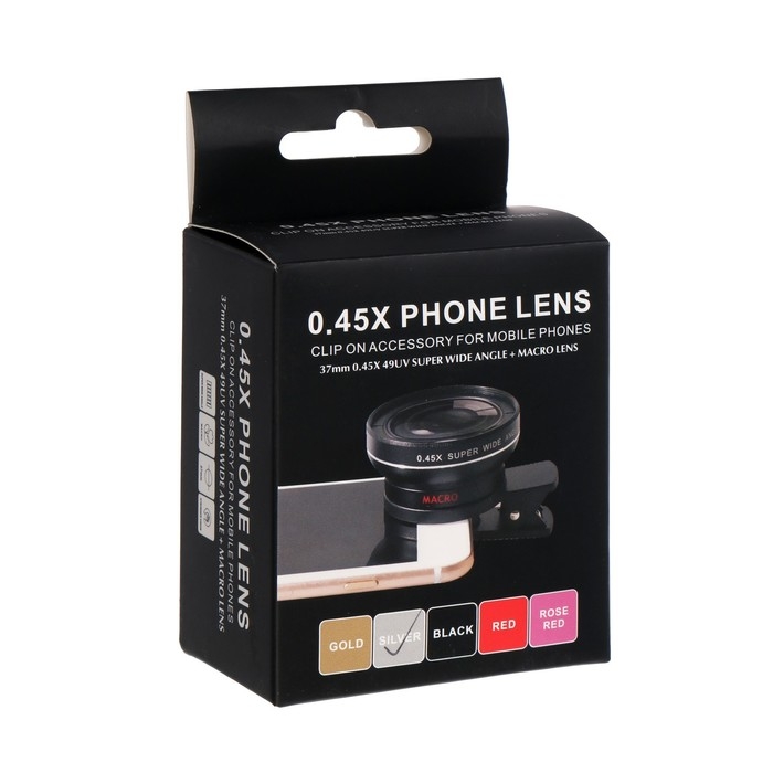 Широкоугольный макрообъектив-линза для телефона 2 в 1, 0.45Х, 37 мм, серебристый