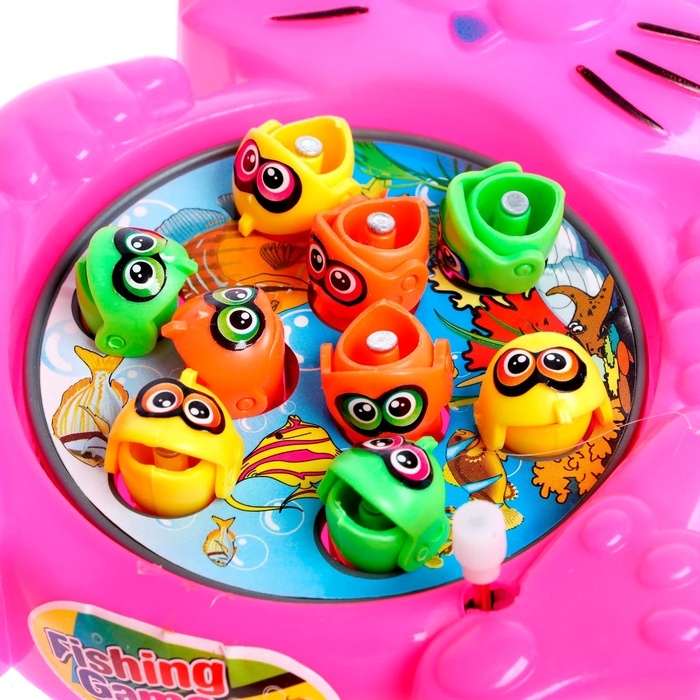 Чтобы начать, нужно включить платформу с рыбками: Игрушки начнут вращаться, и кроха сможет вылавливать их с помощью удочки.