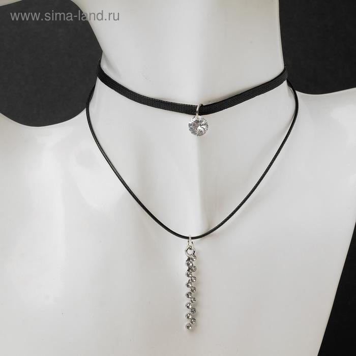 Чокер «Две нити» ступенька из страз, цвет белый, 35,5 см