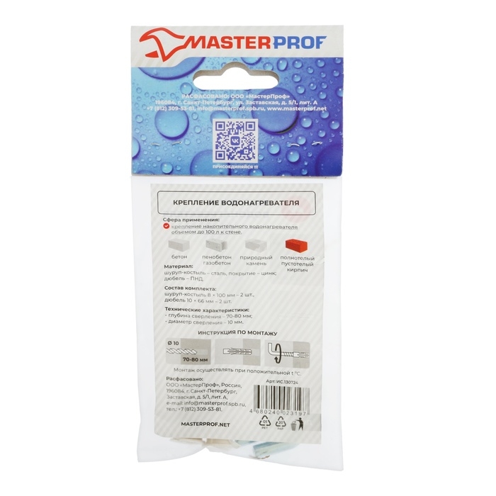 Набор для крепления бойлера и водонагревателя MasterProf, 200 л., шуруп-костыль 10х100, 2шт.