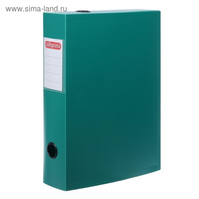 Папка-короб архивная А4, корешок 100 мм, Calligrata, пластик, вырубная застежка, зелёная, до 900 листов