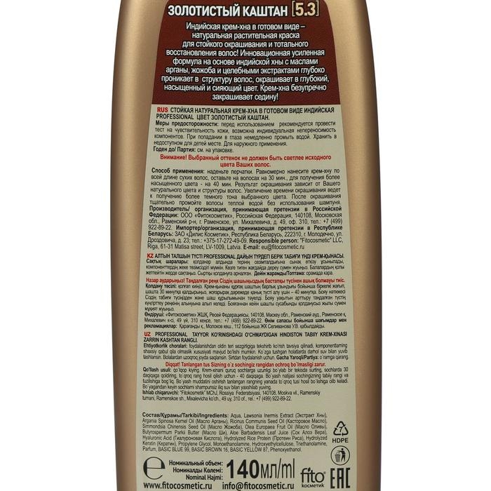 Крем-хна индийская в готовом виде Fitoкосметик Professional, тон золотистый каштан, 140 мл