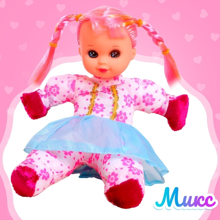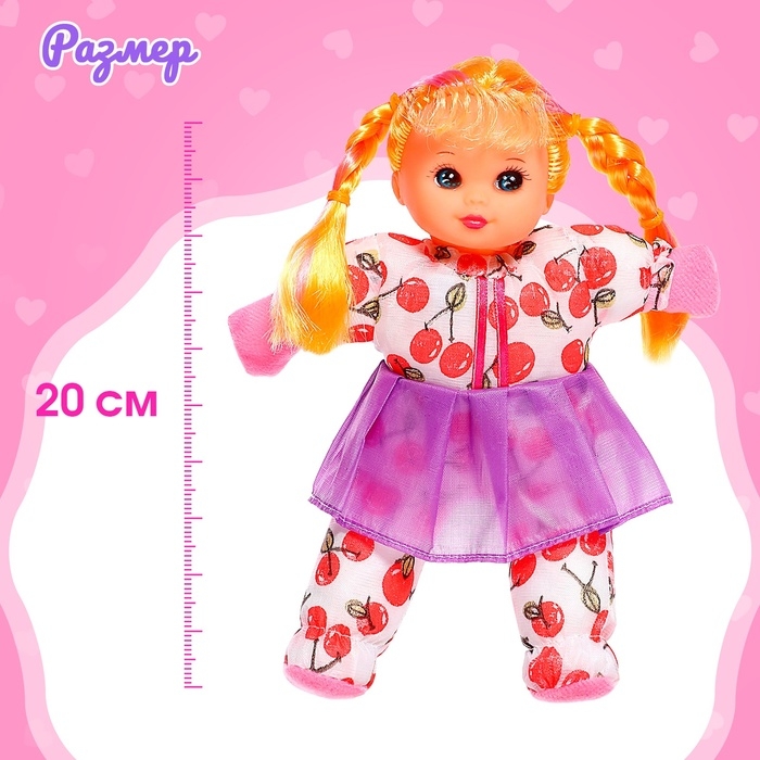 Яркая мягконабивная куколка порадует малышку. Она музыкальная: воспроизводит одну весёлую мелодию. В комплекте есть 1 батарейка типа CR2032.