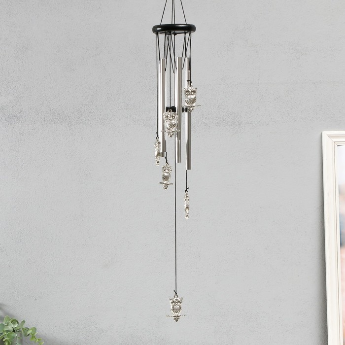Музыка ветра металл, пластик "Филин на ветке" 5 трубок 60 см