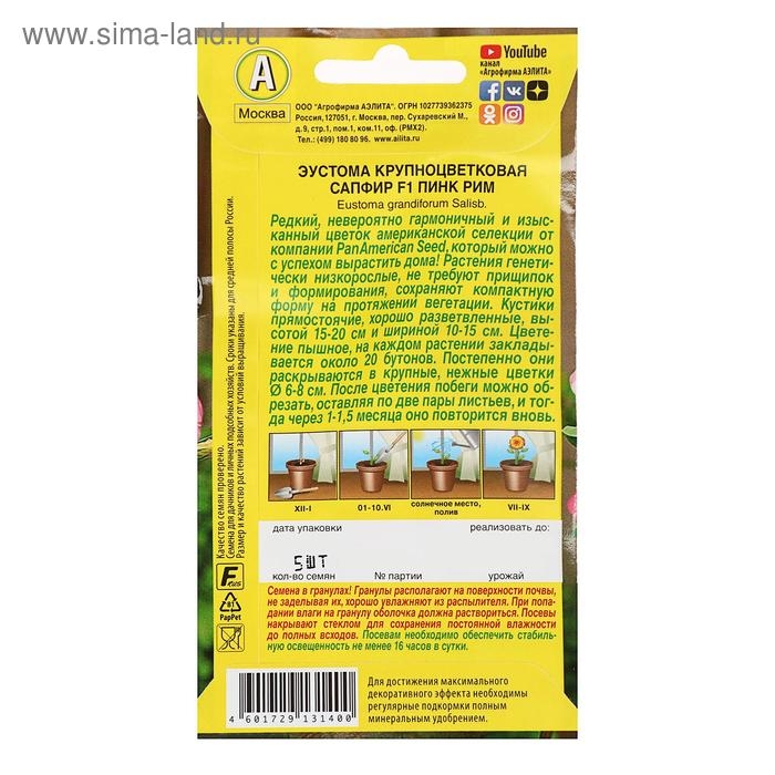 Семена цветов Эустома "Сапфир" Пинк Рим, крупноцветковая, 5 шт