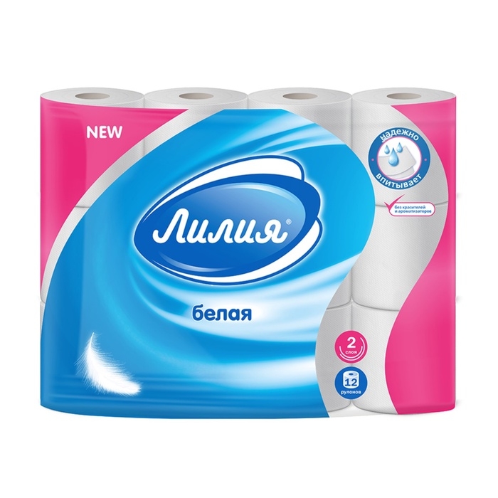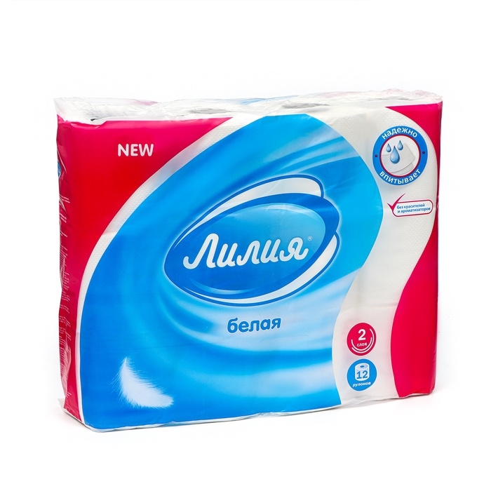 Туалетная бумага "Лилия", 2 слоя, 12 рулонов