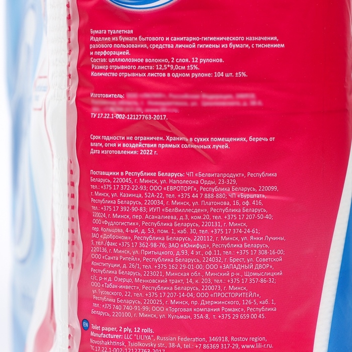 Описание: двухслойная туалетная бумага Лилия изготовлена из 100% целлюлозного сырья.