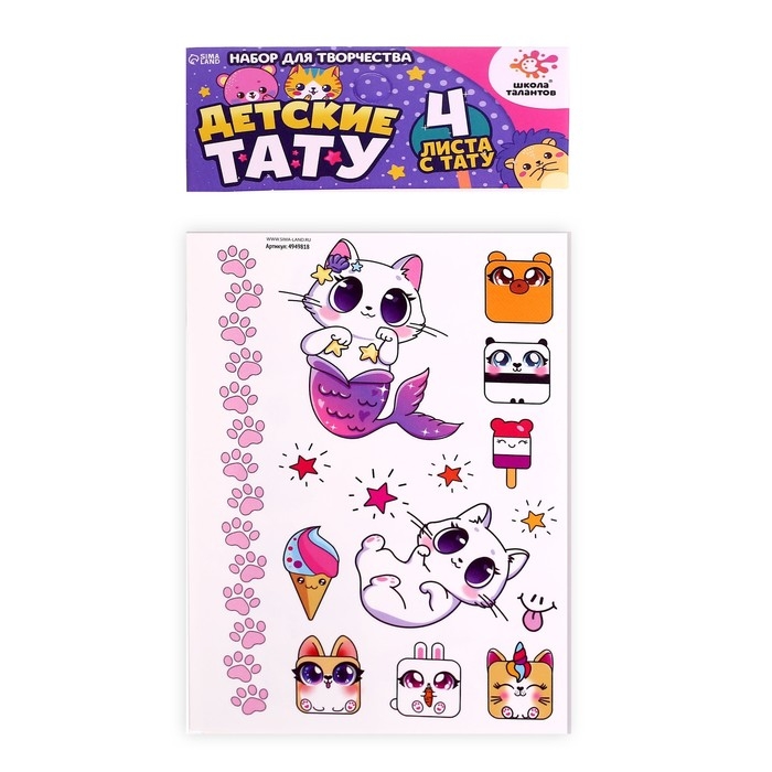 Набор детских татуировок переводок, 4 листа