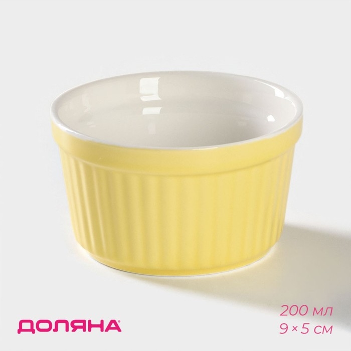 Рамекин из жаропрочной керамики Доляна «Нюд», 200 мл, 9×5 см, цвет жёлтый