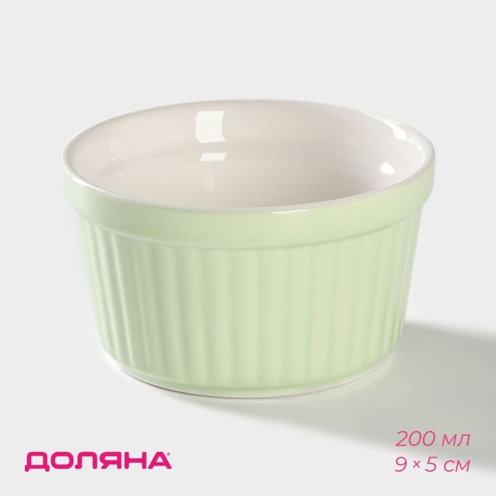 Рамекин из жаропрочной керамики Доляна «Нюд», 200 мл, 9×5 см, цвет зелёный