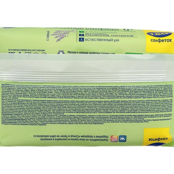 Влажные салфетки с фитоотваром лаванды подходя специально для вечернего ухода. Отвар лаванды успокаивает кожу новорожденного, обладает противосудорожными свойствами.