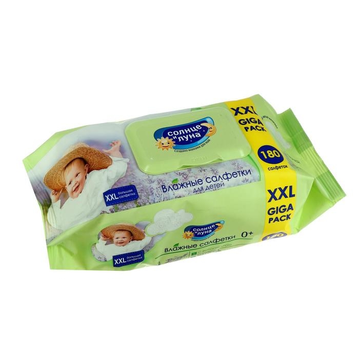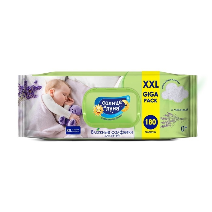 Влажные салфетки детские 0+ "СОЛНЦЕ И ЛУНА" с отваром лаванды, 180 шт.