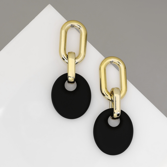 Серьги металл «Цепь» диск, 3 звена, цвет золотисто-чёрный