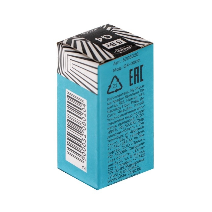 Лампа светодиодная Luazon Lighting G4, 220 В, 5 Вт, 450 Лм, 6500 K, 320°, пластик