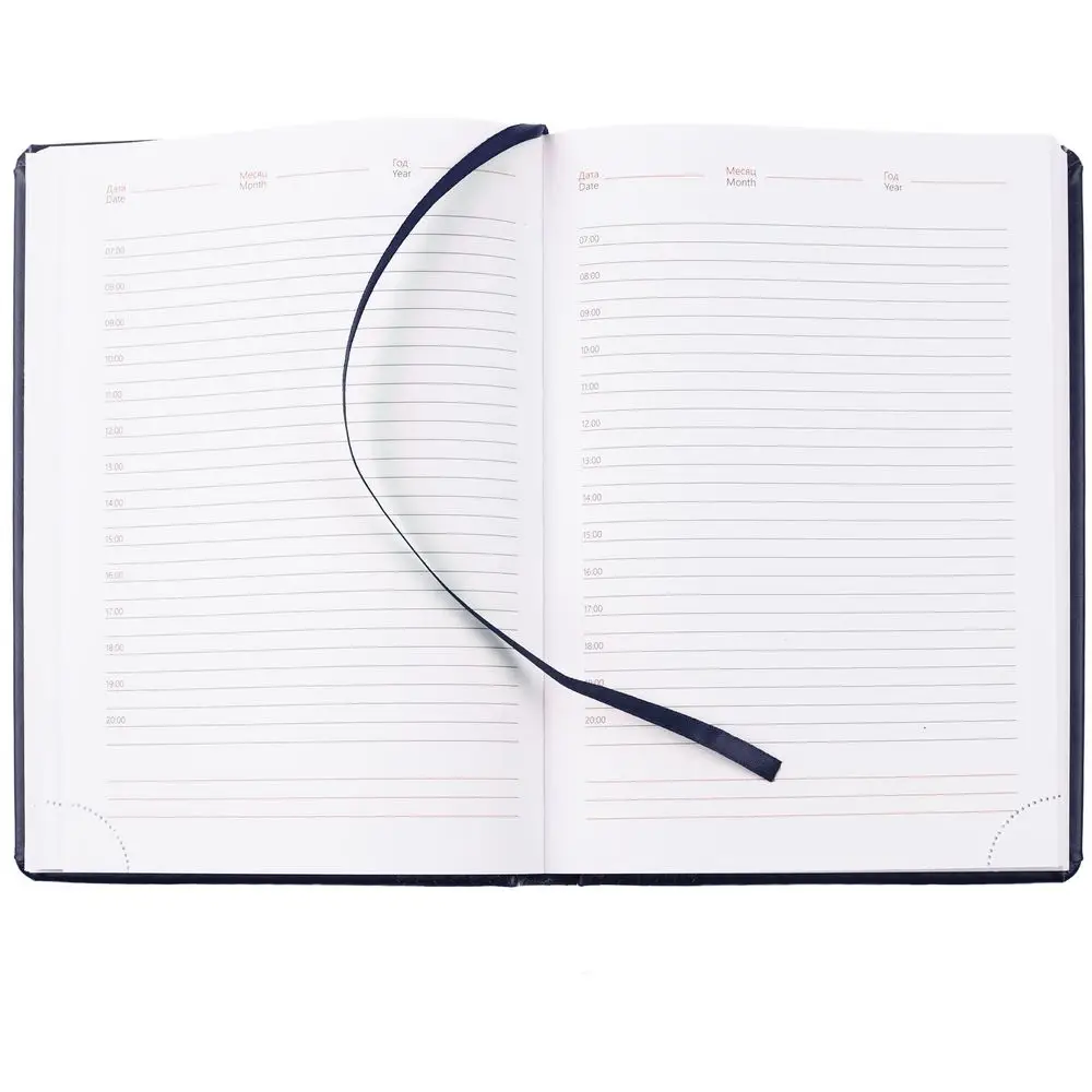 Ежедневник с твердой обложкой, выполнен из материала Waltz, темно-синий XX, дополнен ляссе в цвет материала.