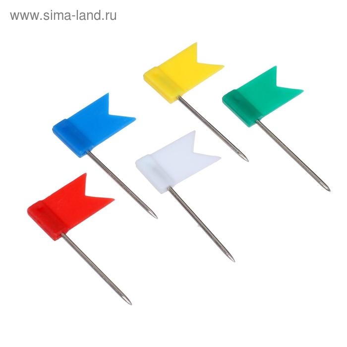 Булавки офисные deVENTE с пластиковым флажком 23 мм, 50 шт в картонной коробке, ассорти
