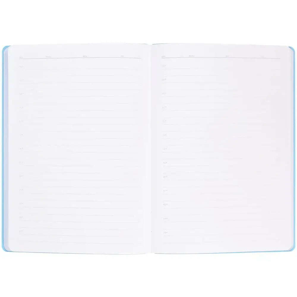 Гибкая обложка выполнена из материала Soft Touch, голубой JJ и Latte, голубой JJ (внутренняя часть обложки). Внутри корешка — специальное место для крепления ручки размером до 15х1 см.