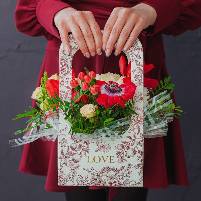 Коробка-переноска для цветов «Цветы», 17 × 12 × 32 см
