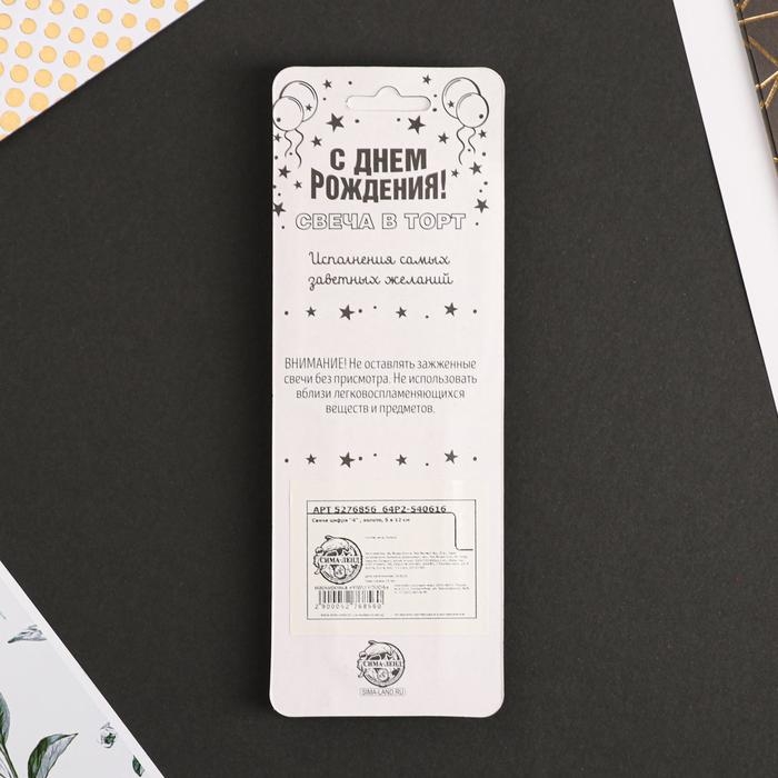 Свеча для торта цифра "Золотая", 5,5 см, цифра "4"