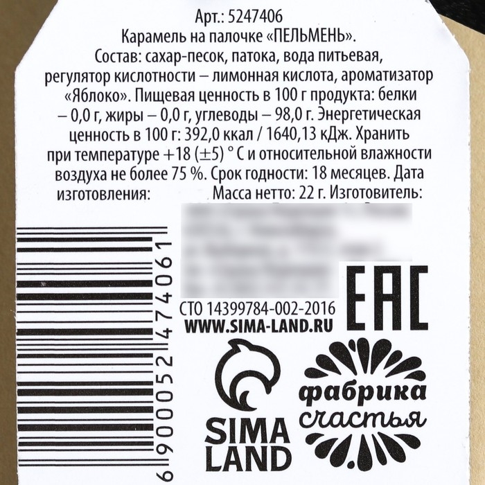 Леденец-пельмень «Сурового мужика», со вкусом яблока, 22 г.