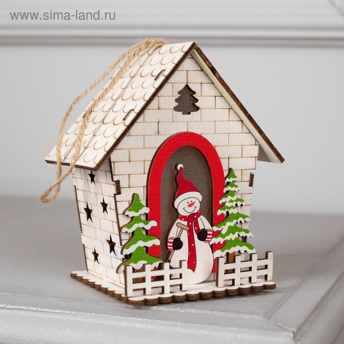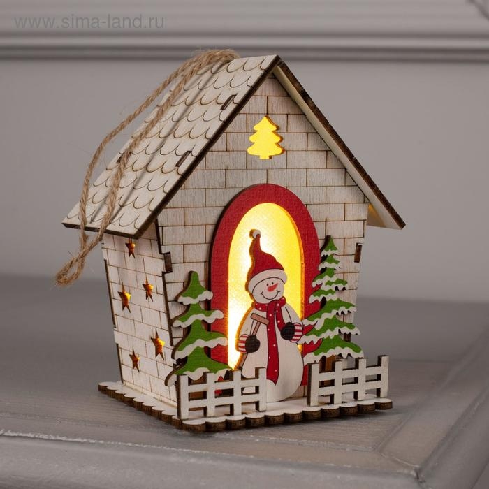 Ёлочная игрушка «Домик со снеговиком», от батареек, свечение тёплое белое